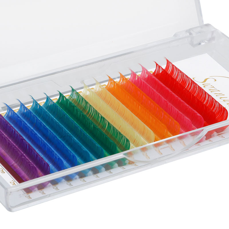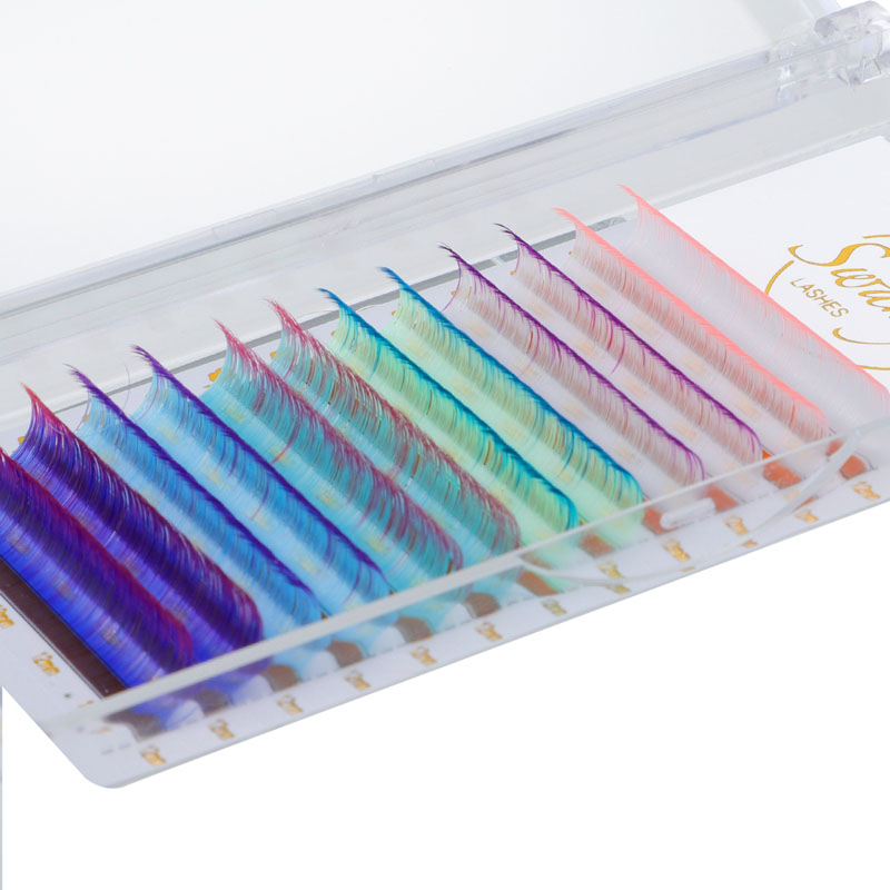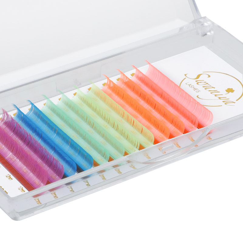 Красочные наращивания ресниц имеют цвет омбре (Ombre Blue, Ombre Purple, белый розовый омбре и т. Д.), Нормальный цвет (красный, розовый, желтый, белый, зеленый, синий, фиолетовый и т. Д.), Неоновый цвет.